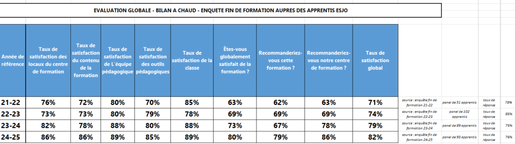Taux de satisfaction 2024/25