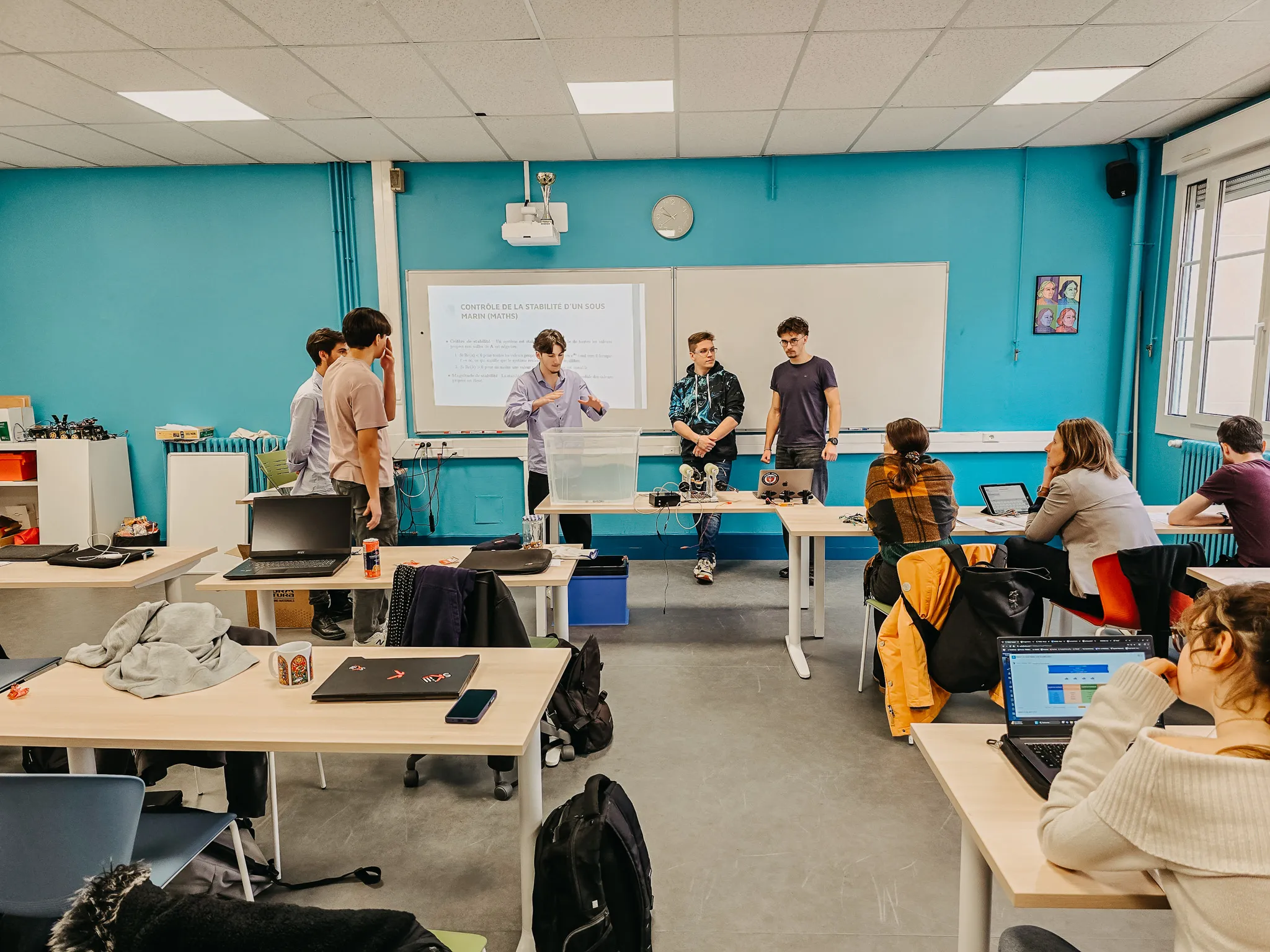 Pendant 36h, par groupe imposé, les étudiants ont allié pratique et théorique en lien avec les enseignements reçus : sciences de l’ingénieur, mathématiques, physique, informatique mais aussi anglais, géopolitique et philosophie.