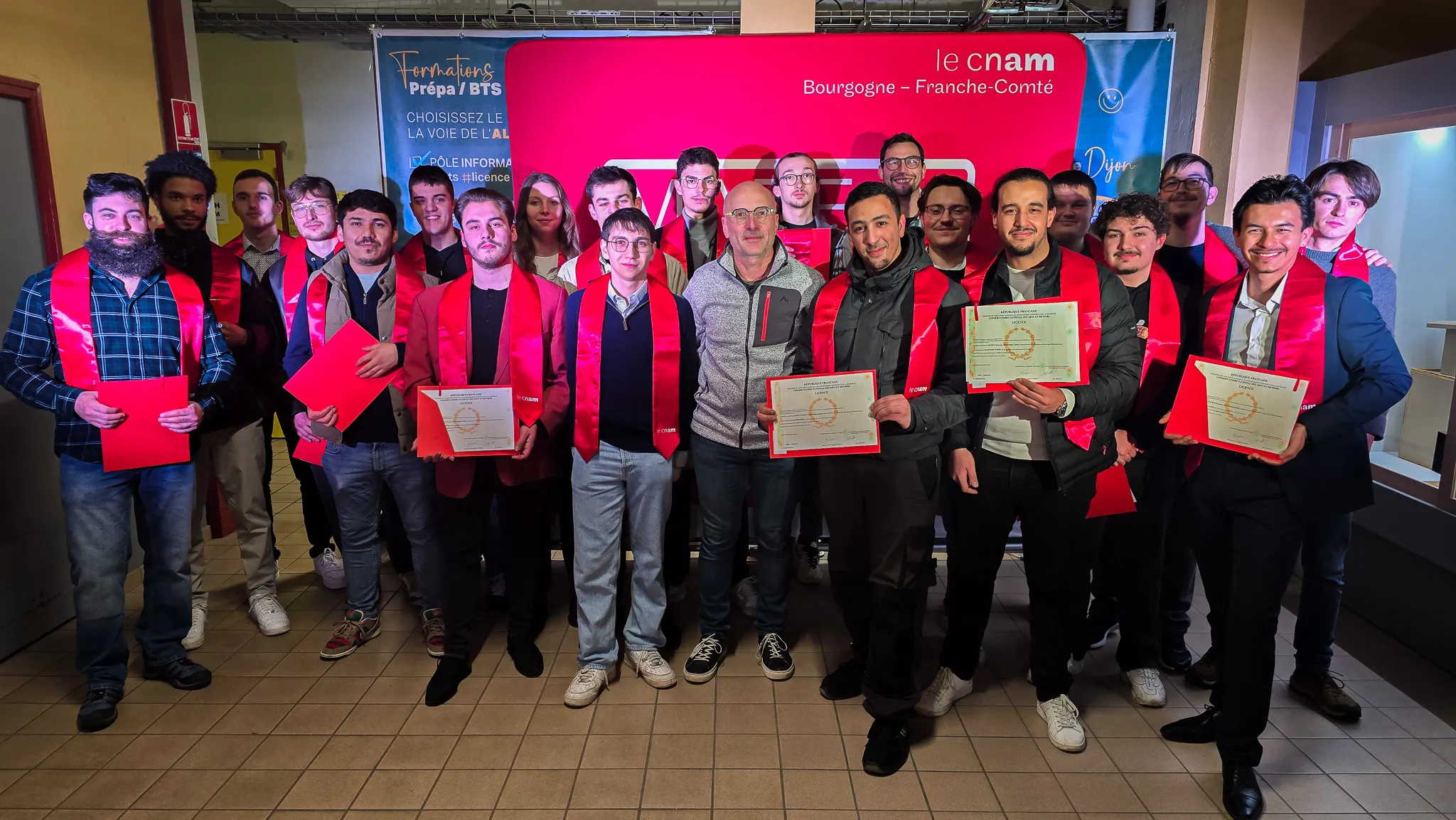 Près de 300 personnes ont répondu présent : diplômés, familles, proches, mais aussi tuteurs venus féliciter leurs anciens alternants. Un grand plaisir également d’accueillir le CNAM Bourgogne Franche-Comté, qui a remis les écharpes et diplômes à nos licences CVM, IAC et SIE