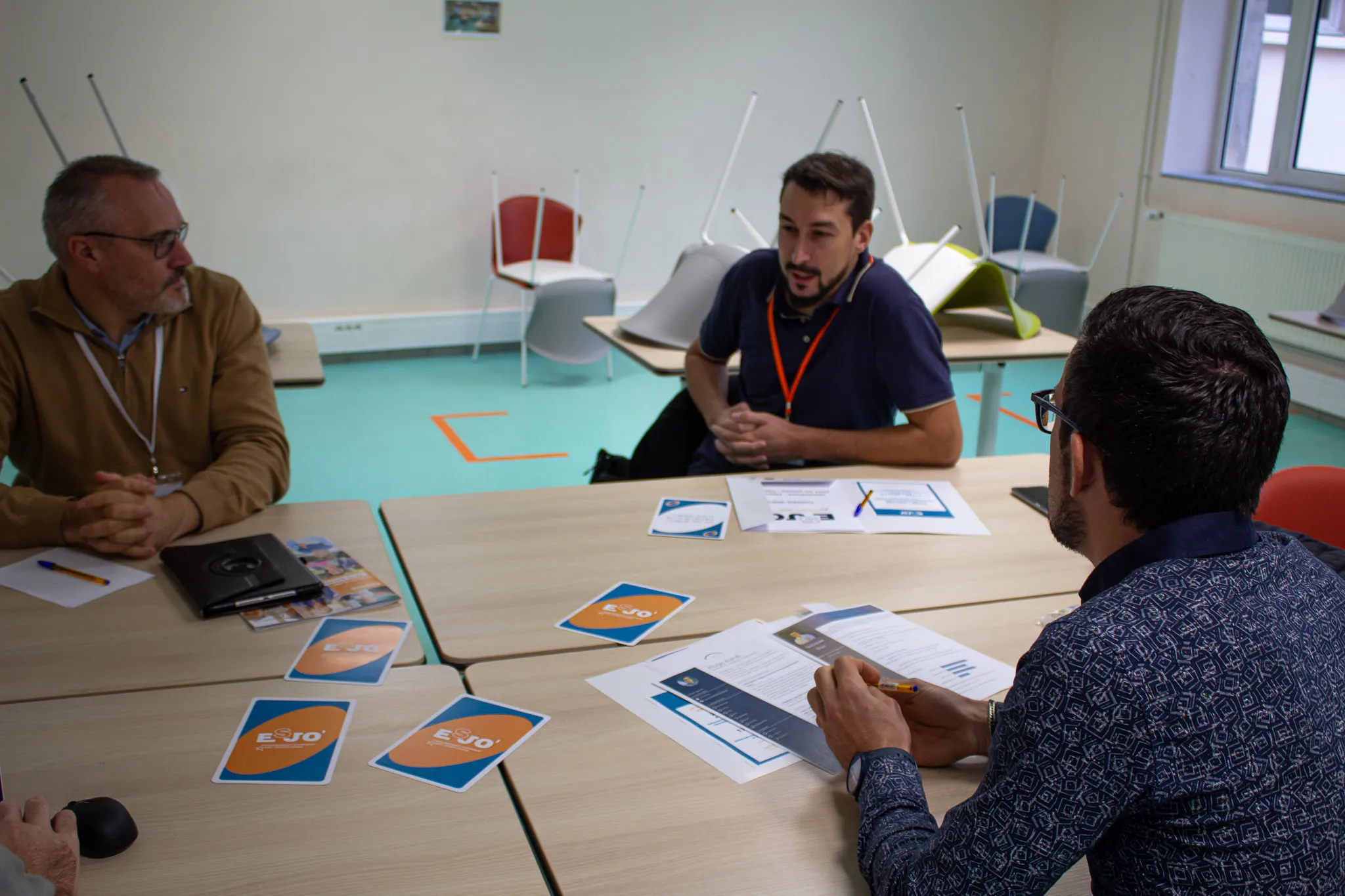 Cette année, c’est au travers d’un jeu de carte made in ESJO’ que nos différents groupes ont interagi. Sur chaque carte une question sur un thème spécifique permettant de lancer les échanges.